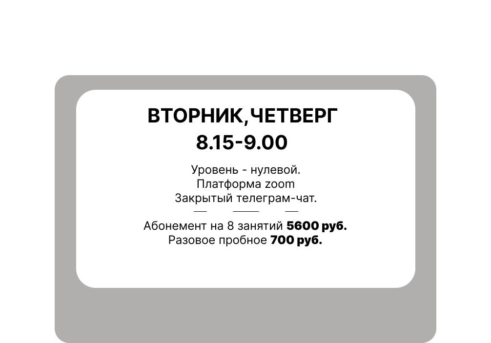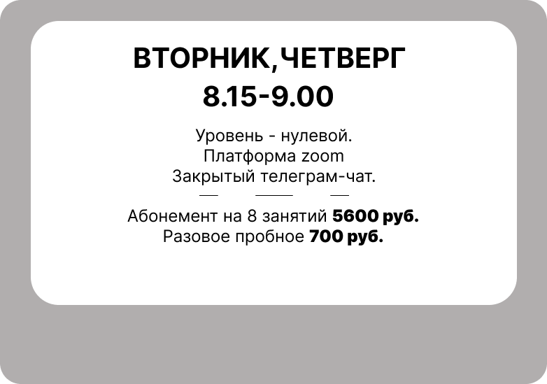 Йога-это состояние баланса духа и тела. Медитация без физических практик не работает, и физкультура без философии не даст результата. Надо совмещать работу с телом и духом. И не важно, знакомы ли вы с асанами, есть ли у вас спортивное прошлое. На занятиях мы учимся дышать и чувствовать свое тело. Всего 45 минут, чтобы проснуться и накачать себя энергией на весь день.